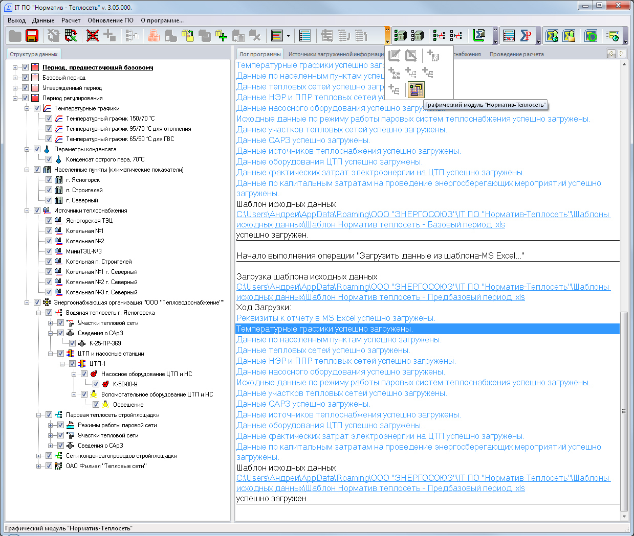 Крупное ЭСО - это теплоснабжение городов, или половины городов, или нескольких региональных городков (структура крупного ЭСО представлена более чем 15 производственными предприятиями, филиалами и т.п.). Есть возможность слияния нескольких шаблонов исходных данных для сводного расчета по всей организации.